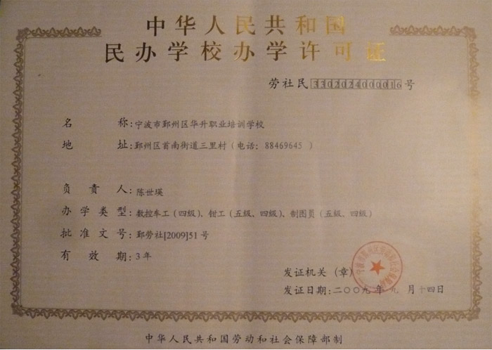 The school set up under the Human Resources Development Service Department, to the company as a base and training center relying on a combination of the spirit of learning and employment. In conjunction with the Ningbo molds Association and the purchase units of CNC machine tools, conducting courses, the trainees training of qualified vocational qualification certificate issued by the labor department.